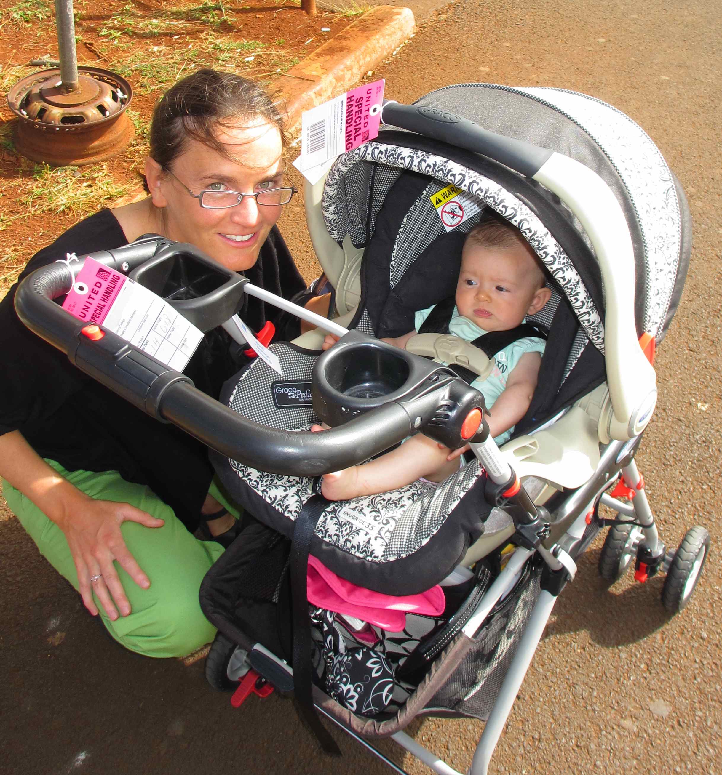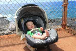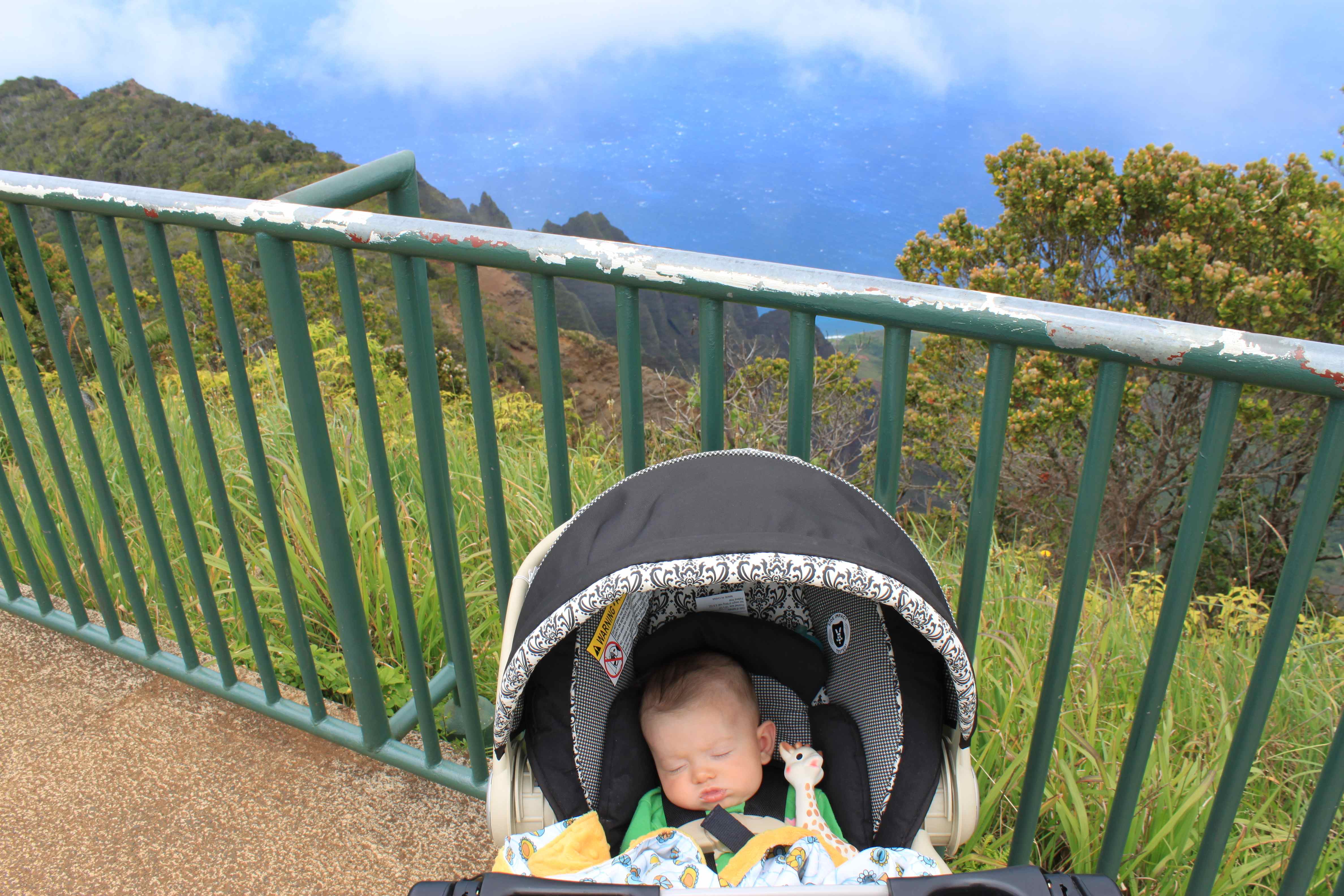 When your papa was driving us home from the airport this morning he asked if you were still sticking your tongue out all the time. I thought about it and realized that nope, you hadn’t been doing that at all for a few days. I also remembered that while in HI you started bending your legs up to your chest, grabbing your toes and rolling on your side, nearly rolling over onto your tummy from your back. It’s amazing how much you changed in just a few days!