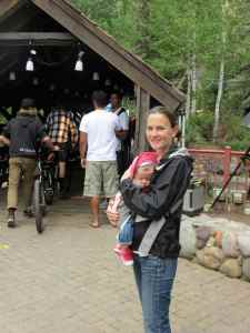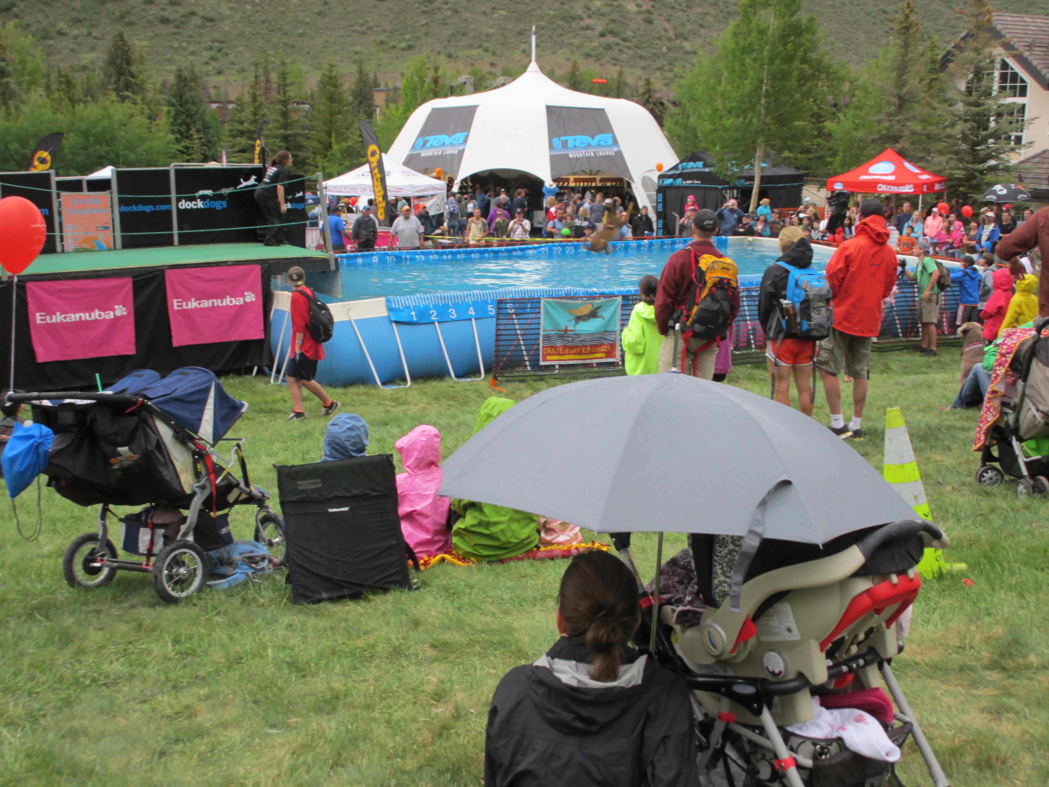 We saw a mountain bike race and lots and lots of people and dogs, but my favorite was watching people on slacklines and the dog contest. I’ve seen people balancing on slacklines before, but today they had people who could jump and bounce and flip on them; one guy was even doing this about 20 feet above a river! We also went to watch the dog distance contest. Dogs run along a dock and dive in after a bumper, trying to get the longest jump. It was lots of fun, and you even seemed interested in it.
