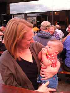 We went to the Sun for dinner and drinks, and you enjoyed relaxing there in your stroller, then being held by each of us. You also slyly grabbed a lemon off my beer and enjoyed sucking on that.