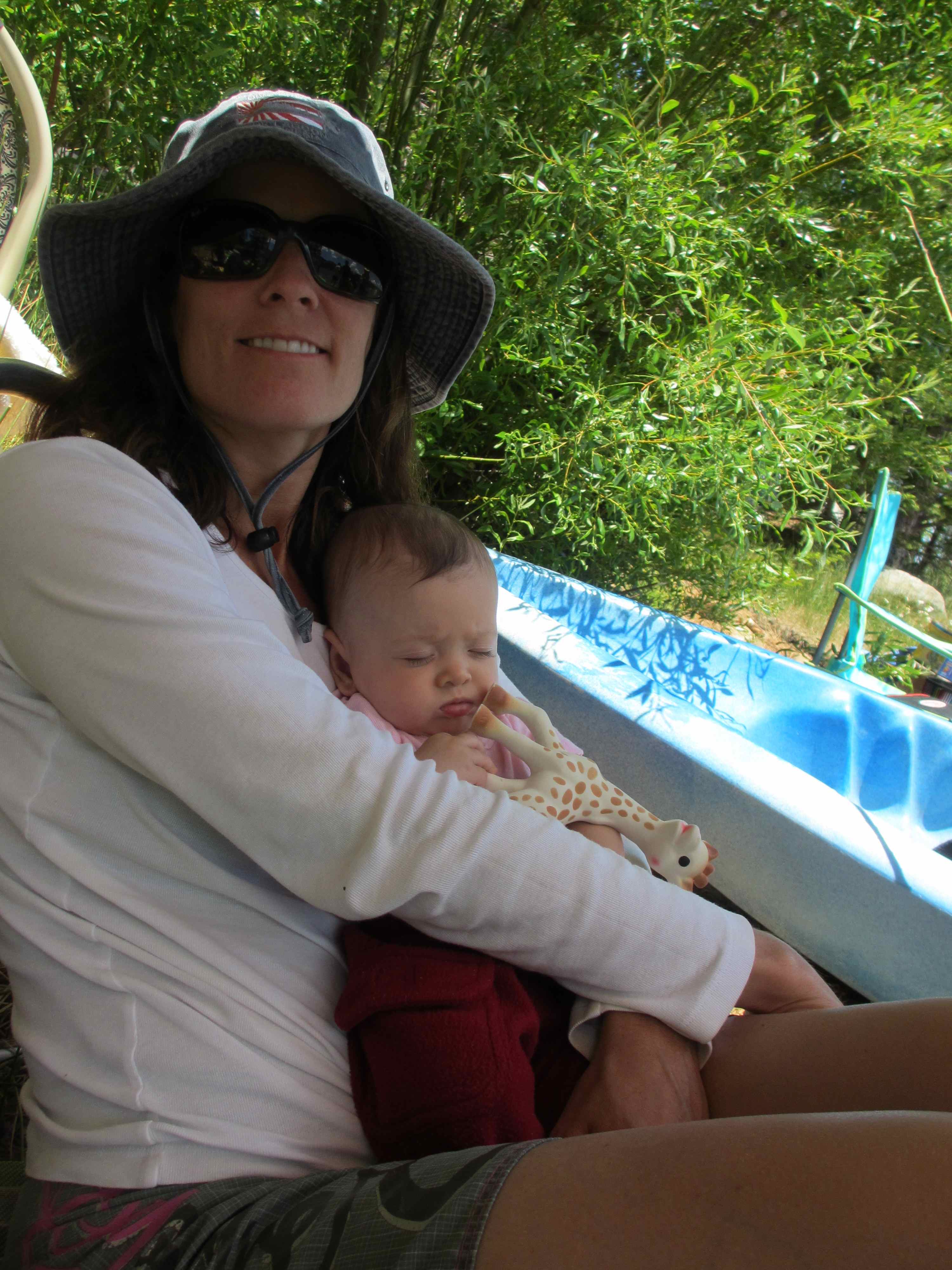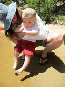 Aunt Jen held you and dipped your tiny feet into Lake Tahoe. You seemed curious and interested, picking up and moving your feet about. After a couple of minutes you expressed your displeasure at the activity, letting us know you’d had enough of the cold water. You lasted longer than I thought you would. The water is COLD this year. Last year your uncles and I (and you in my belly!) swam out to the island every day. We all did it today and I think it is the coldest I’ve ever been in water. Brett said it was 55 degrees out. It was craziness. I won’t be doing that swim any more this week.