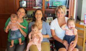 Anyway, Sarah wanted to recreate the picture. So all the moms sat down, in the same order as that original, 35-year old or so picture, and held our little ones and took many pictures. Everyone was pretty content in the pictures, but in many of them you are reaching out towards Francesca. You are displaying the curiosity and outgoing personality that is so representative of you. I love that this picture captures you perfectly, and I wonder if someday you’ll recreate it.