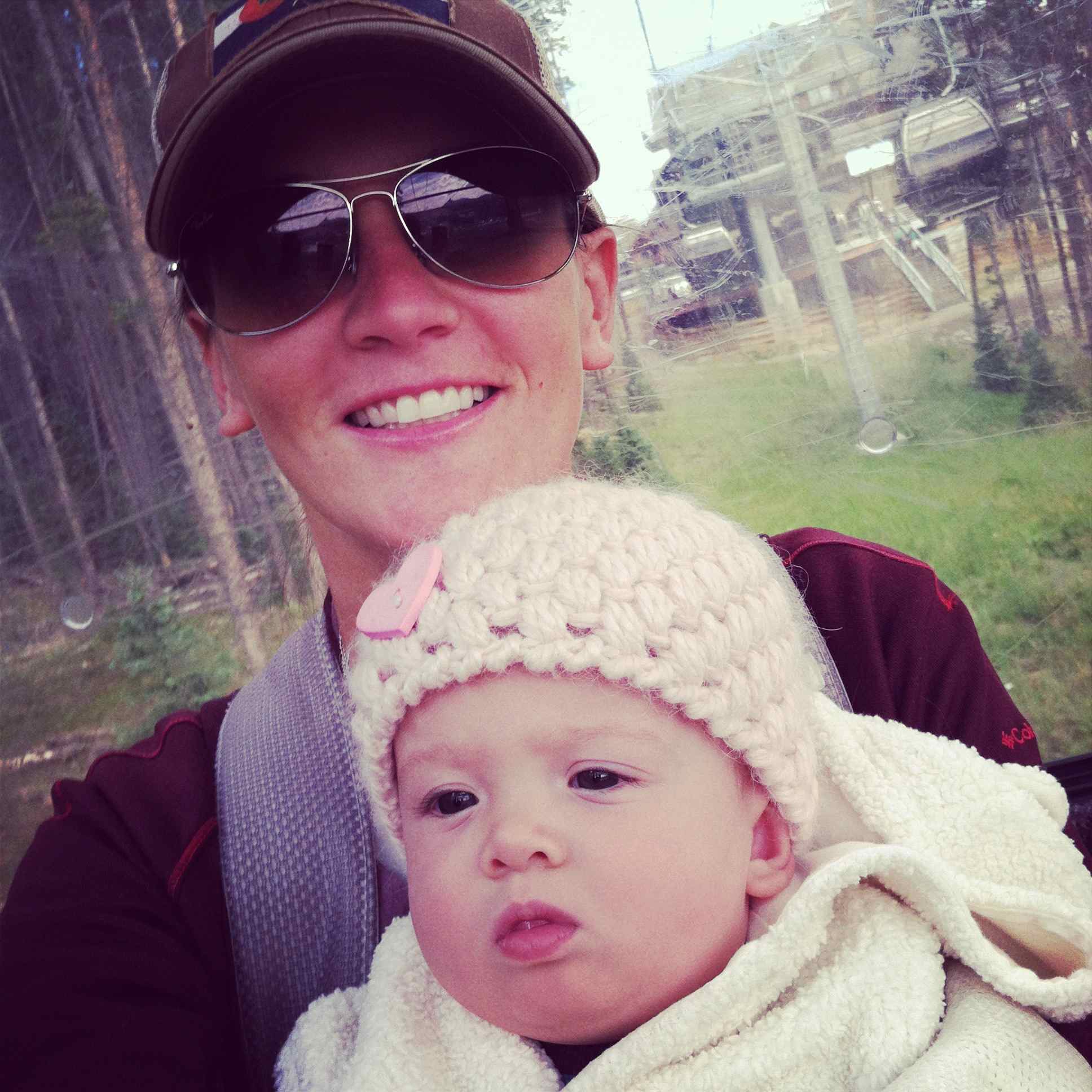 This afternoon we took the gondola up to the ski area to meet up with Lia and her husband. I haven’t been to the ski area in the summer since I was a little girl; your papa and nana used to take me there to ride on the alpine slide. Well the area sure has changed and been developed; now there’s putt putt golf, biking, horseback riding, and other activities in addition to the slide. You appeared to be taking in the views from the gondola, busy looking around as we passed through the trees. I was so looking forward to taking you on your first gondola ride, and it’s neat to think that this if the first of many fun adventures we’ll have on the mountains together, in both summer- and winter-time. You seem so at ease and right at home outdoors. We’re so glad, because we plan to spend a lot of our time with you outside.