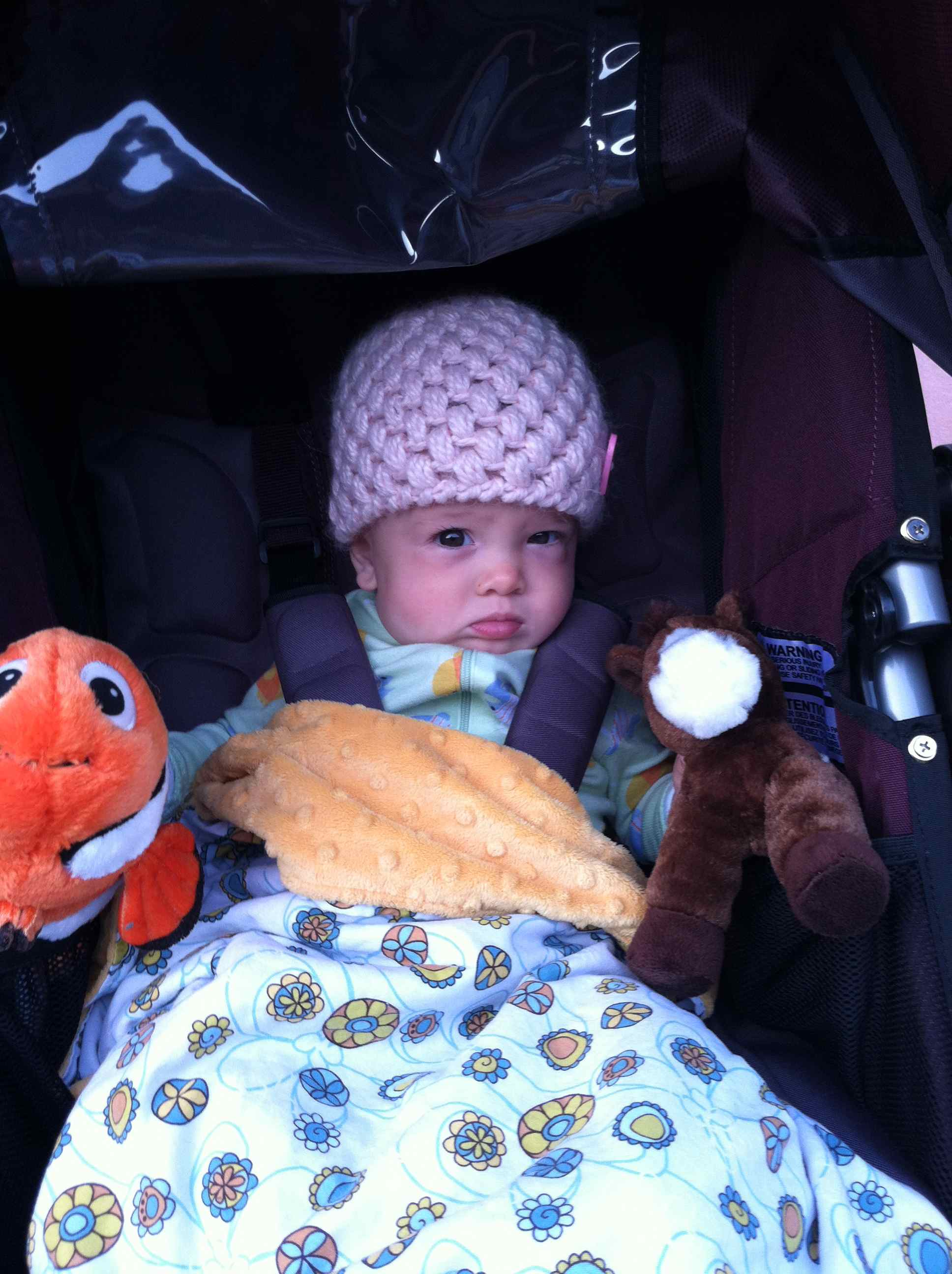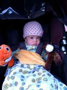 You are an early riser. You often wake between 6 and 7, though you’ve had a few mornings where you’re awake as early as 5 and you’re ready to start your day. At that early hour your dad is in denial that you’re really up and wanting to play, and he brings you to our bed and tries to get you to snuggle. I can do nothing but smile and giggle as he lies there, eyes closed and arm wrapped around you, trying to will you to sleep. You roll back and forth, between him and me, grabbing at our noses, lips, hair, sometimes hitting us to get our attention, pulling the sheets here and there. There is absolutely no way anyone could sleep with your activities going on. But still he tries, lying there motionless, eyes closed, letting you pinch and pull and play. I try to contain your movement and my giggles for as long as possible, but eventually tell your dad that he needs to give up on trying to sleep and we just need to get up.