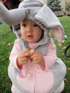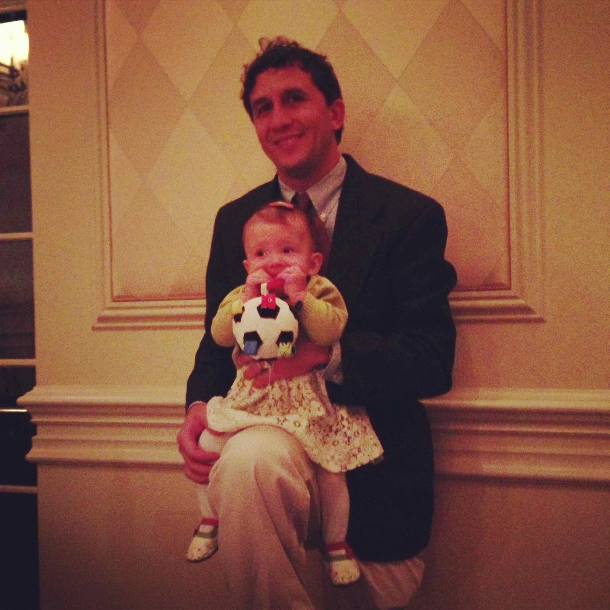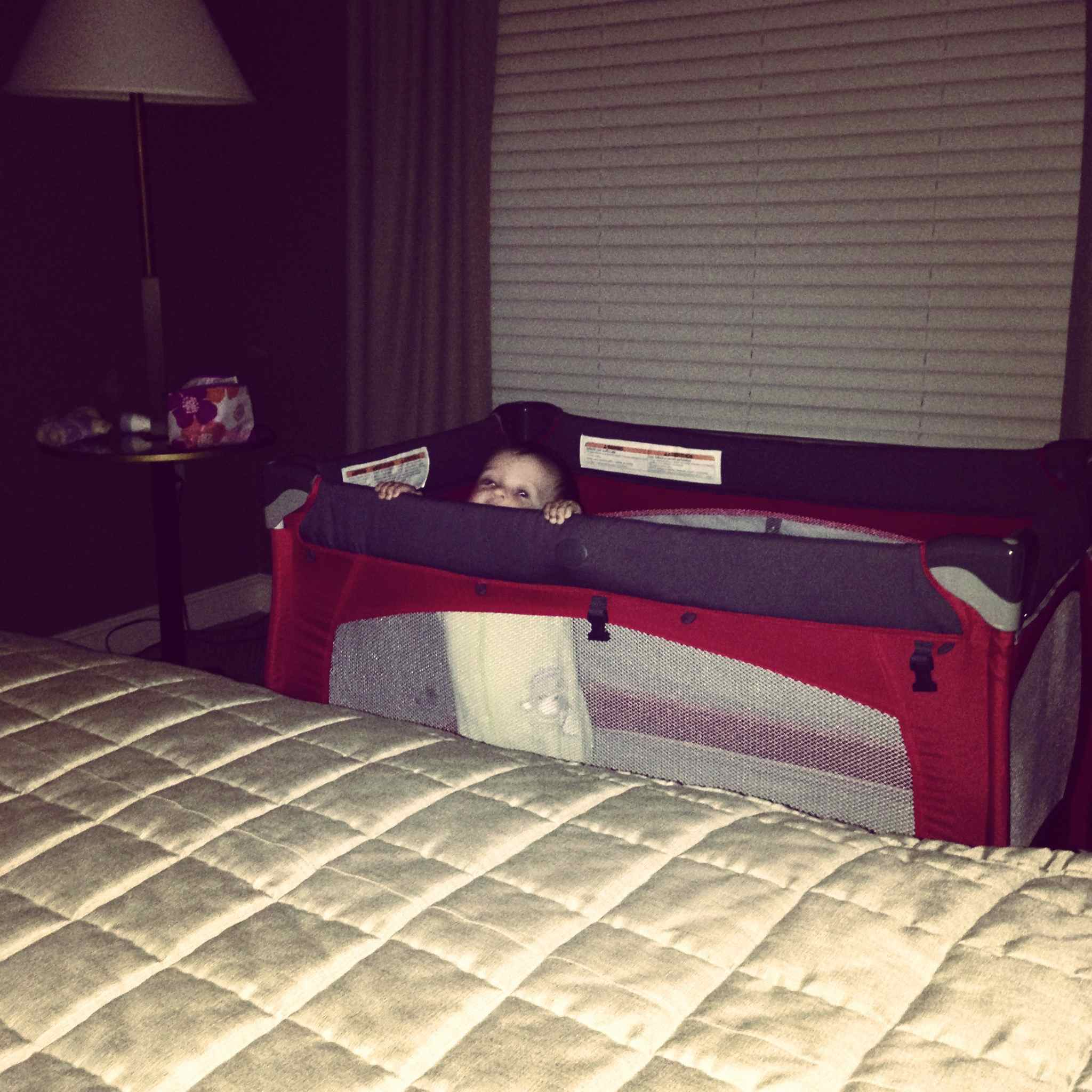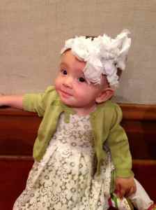Your sleep schedule is a bit off here, and you’re not sleeping very well either, probably on account of being in a strange place and also as a result of your stuffy nose. You’re waking frequently in the night, and also waking around 6 am. We’ve been snuggling with you and playing with you in bed, and you fall back asleep around 7 and sleep until 9. This is nice for us, but sure has caused us to sleep away the mornings of this vacation. That’s ok though, I suppose that is what vacations are for – relaxing and catching up on sleep. Anyway, we all went out for breakfast then came home and took another nap. Neither you nor I are feeling very well, and so we thought we’d get in a quick rest before the wedding. Unfortunately we awoke with about 30 minutes until we needed to go, so we had a mad dash of getting ourselves ready and then you ready really quickly.