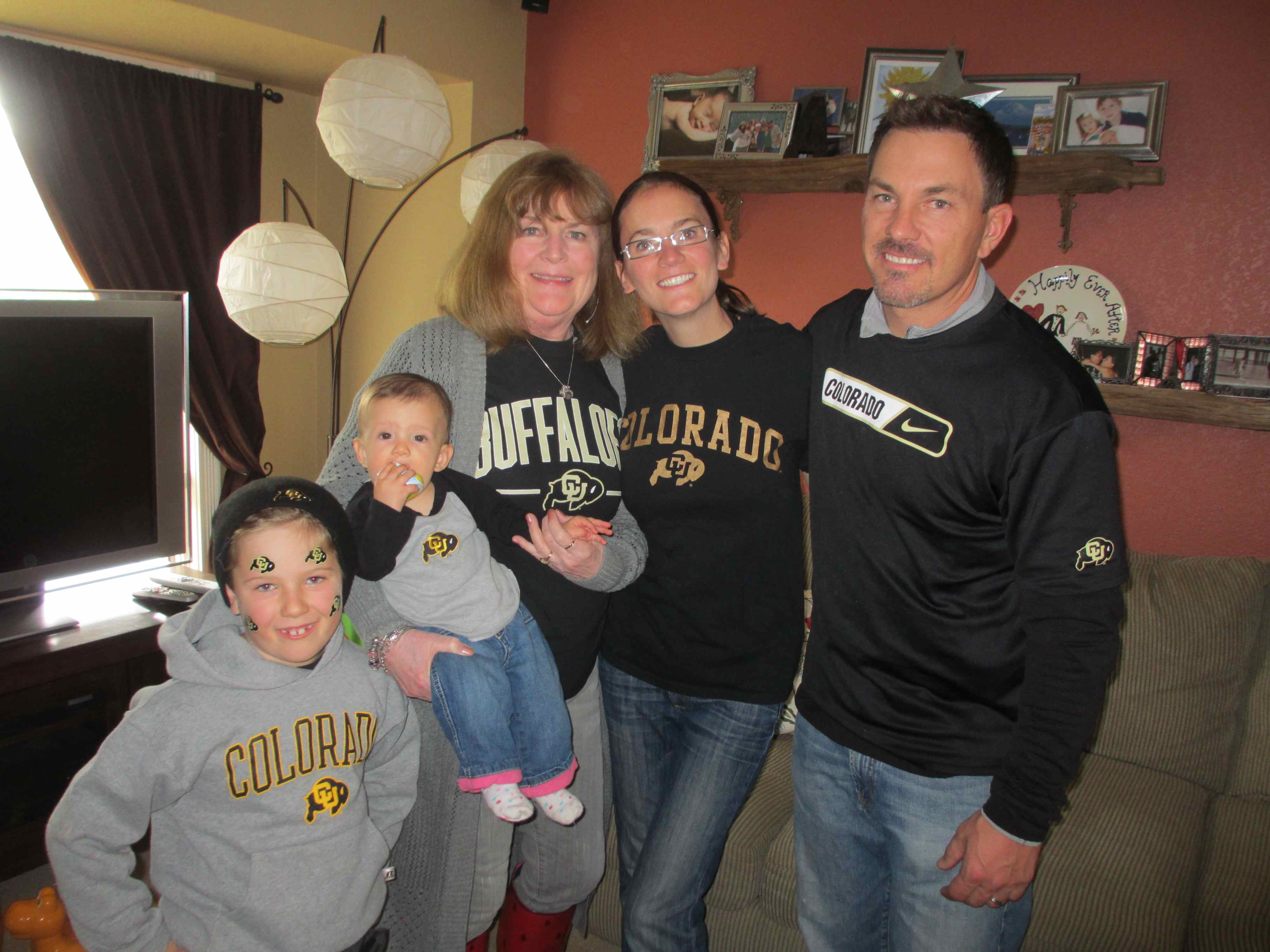 This evening we all went to the CU game and your dad stayed home with you. But before we left we couldn’t resist taking a picture of all of us in our CU gear.