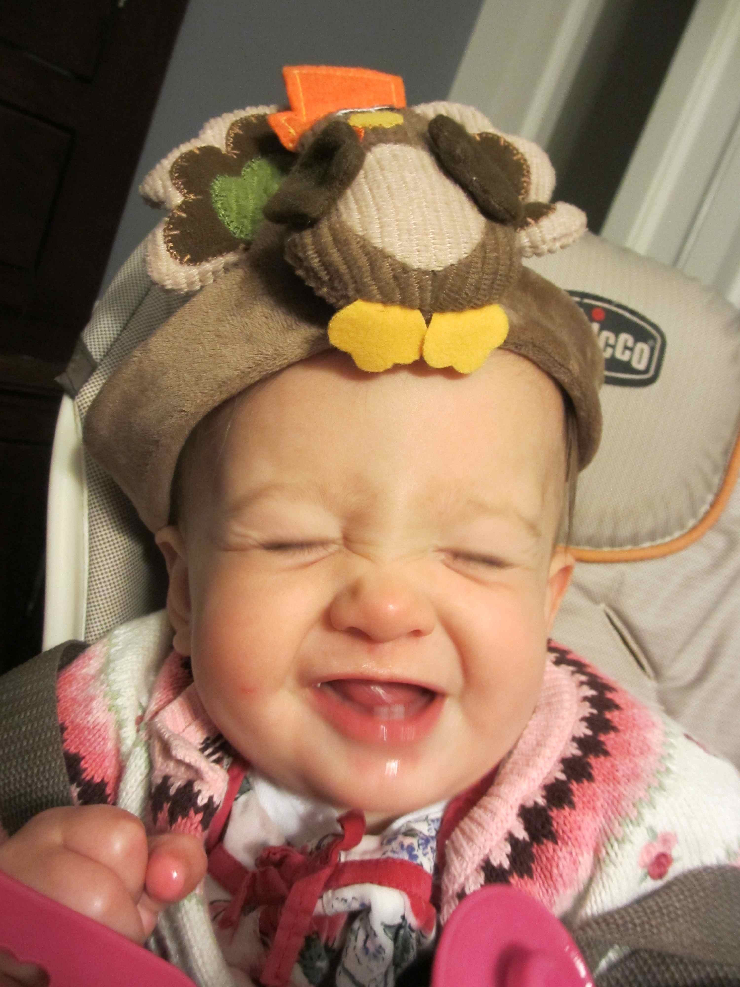 The nanny was sick today and your dad and I both had to work, so nana and papa came over to watch you. They had lots of fun with you, and even took you for a nice walk. You were wearing your bunny slippers, and one bunny hopped off your foot and into a neighbor’s yard. After walking for awhile they realised it was gone and papa had to go back and find it. We’re quickly learning that we need to take inventory of everything in the stroller and on you at the beginning of walks, and then keep taking inventory frequently throughout the walk.