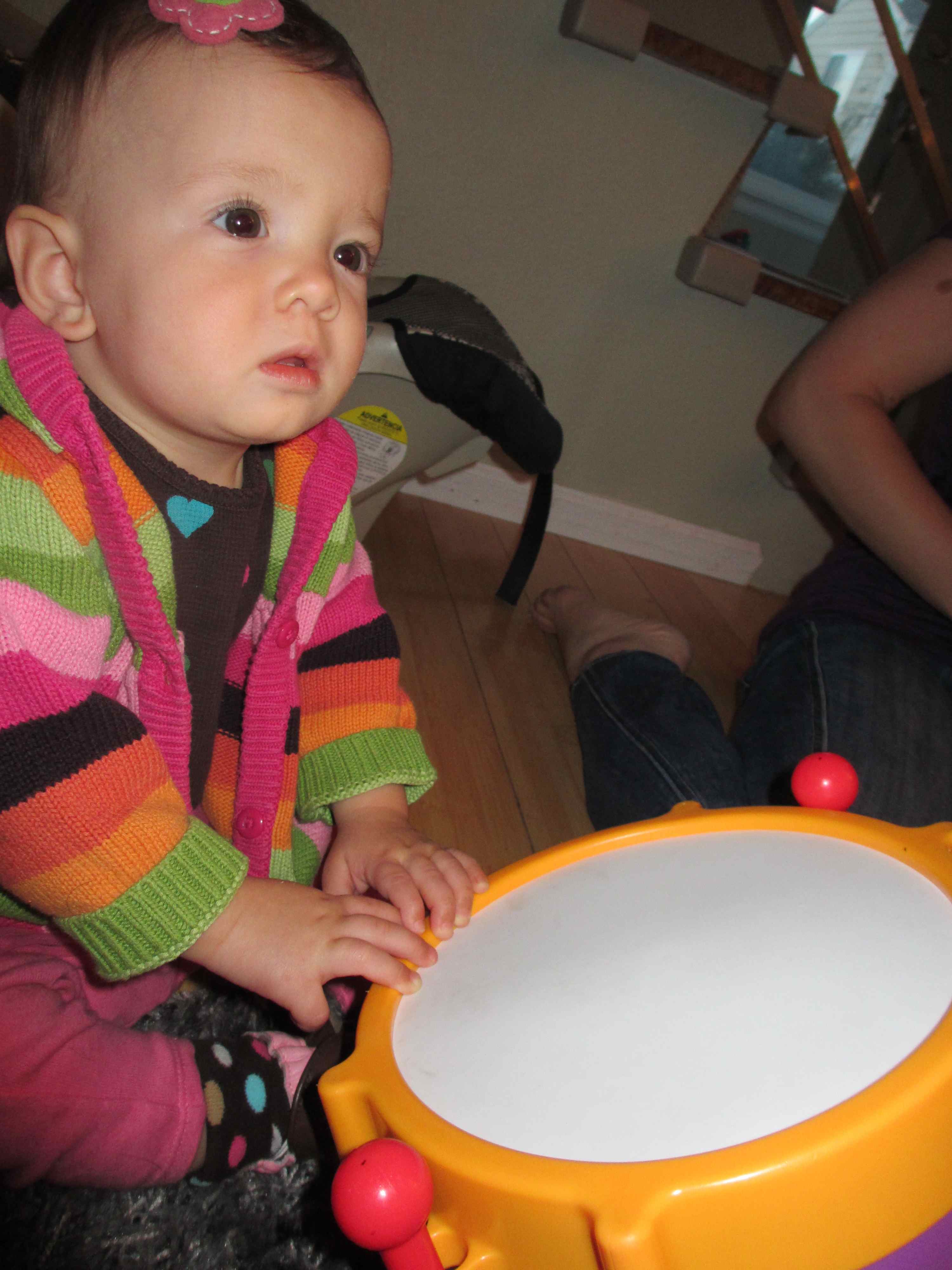 We walked into the house and it was filled with kids and adults, musical instruments and singing, and the cheerful babble of children and babies. It was so fun to watch you take it all in; you were enthralled watching everyone. Right away someone handed us a drum and we banged on it together, but you were more interested in just watching everyone else. You seemed to really like the class and I’m excited to take you again.