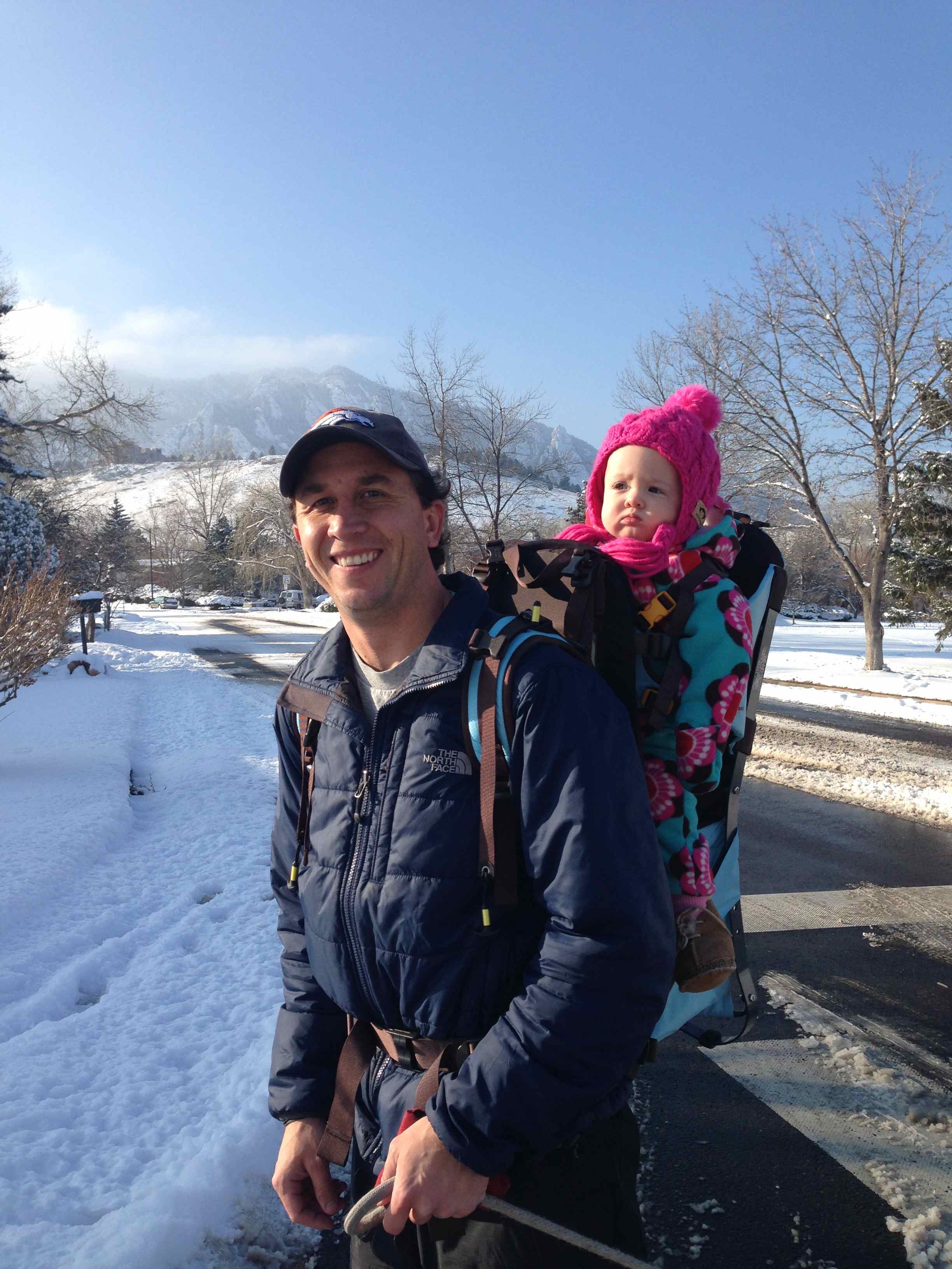 After the presents were all unearthed we enjoyed a nice brunch, and you took a nap. Then we decided to try out our new backpack. I bought it last summer but you’ve been too little for it. But recently you’ve been growing agitated in the Baby Bjorn after short walks, and so we thought we’d try it. We bundled you up and loaded you in, and you were so happy and curious once strapped onto your dad’s back. You happily chatted the entire way.