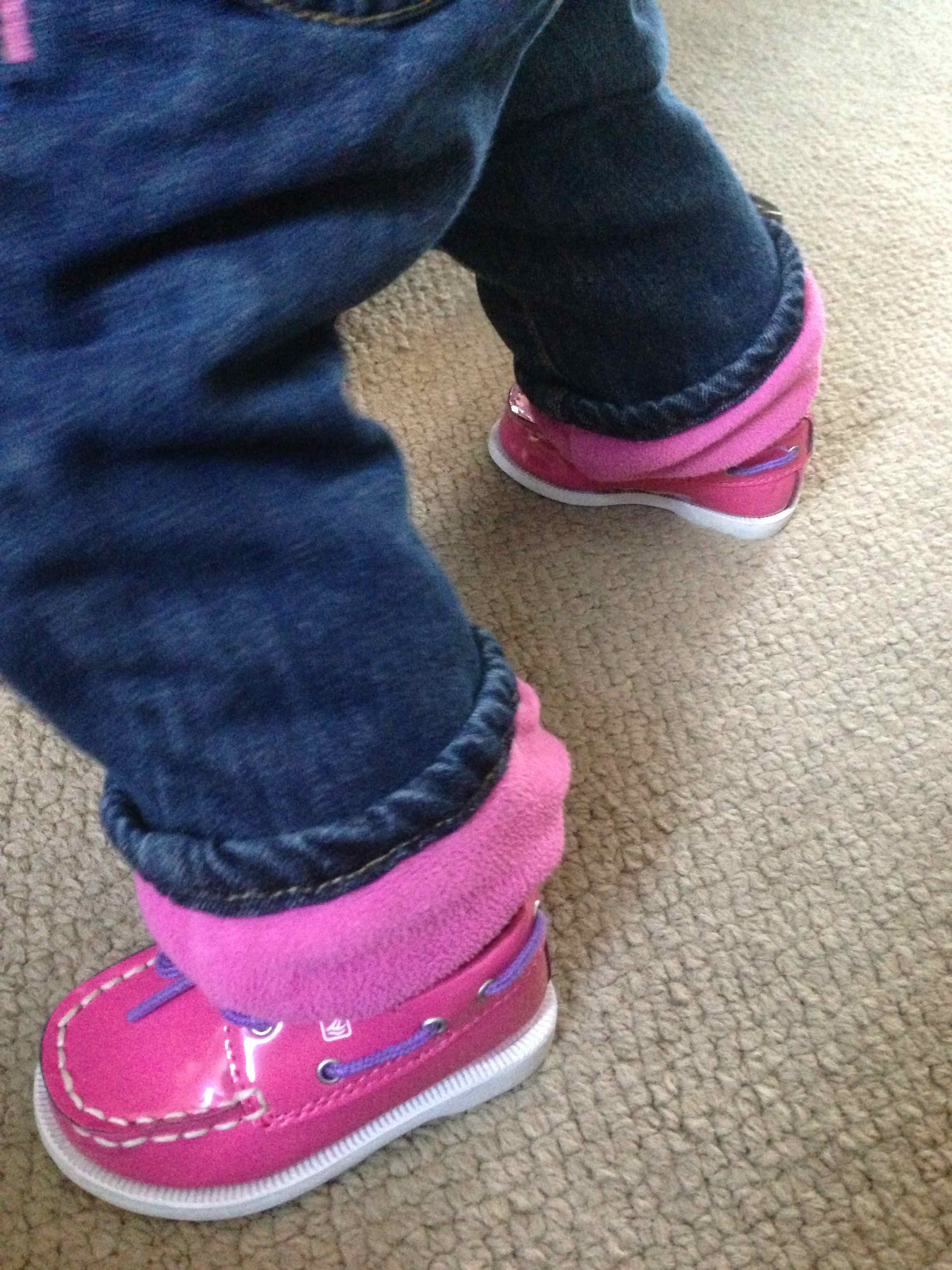 I have been on a crazy, seemingly never-ending mission for shoes for you. Don’t get me wrong, you have many, many pairs of shoes. You have too small shoes and too big shoes, shoes that used to be mine, boots that your nana bought in London years ago, boots that your cousin used to wear that your aunt and I love too much to ever get rid of, and dozens of pairs of hand-me-downs from friends and family. But finding shoes that fit you now, and that stay on you, is virtually impossible. You have one (!) pair that will stay on. You have about five others that fit you but only stay on for a few minutes before you win the battle that you’re contstantly waging against your shoes and get them off. Now that you’re on your feet so much more, you’re quickly wearing through the one pair that fits you. I recently bought you an adorable pair of pink topsiders. You got them off within the first five minutes. Today I ran to my favorite kid’s clothing store and bought you a pair of boots and a pair of moccasins. I’m hoping the boots will keep you warm when we go out in the cold winter weather, and I’m hoping both of them will stay on your feet. This remains to be seen.